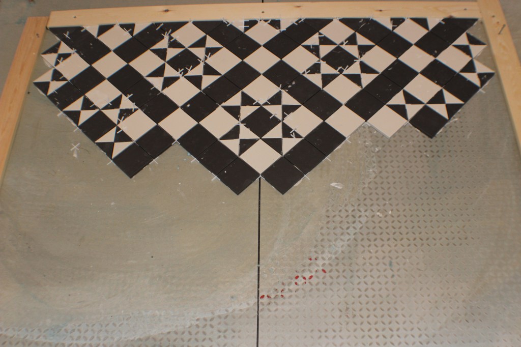 Once the infill of the pattern is complete, start laying the tiles for the borders.