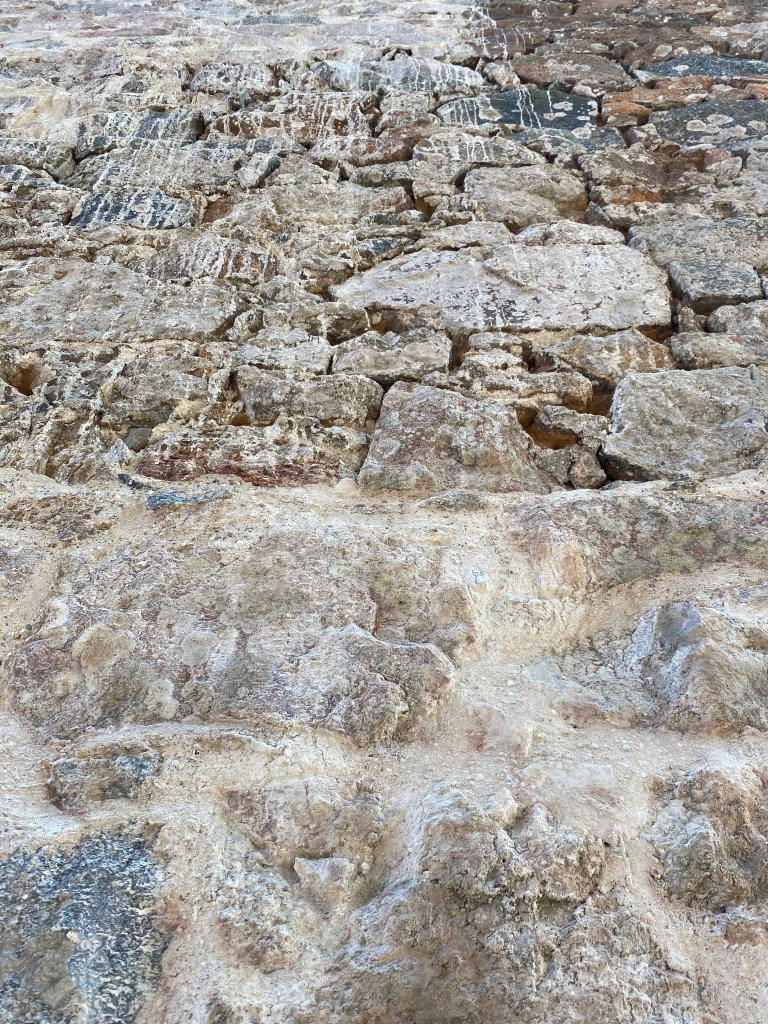 Leave it to semi-dry for c. 20 minutes or so, then brush off with a wire brush. Don’t be gentle with this – the intention is to bring out the smaller stones from within the mortar mix. Repeat this a further two times, keeping an eye on your brush strokes – you don’t want to see the strokes, so alternate how you brush to even it out.