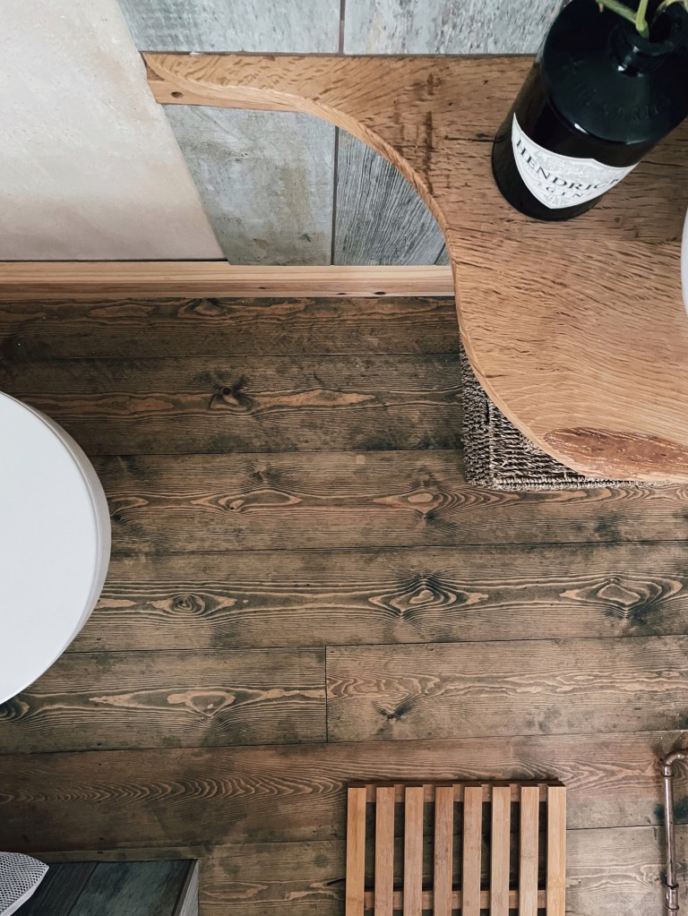 Instead, I wanted to create something organic that didn’t feel out of place and ‘flowed’ naturally with the toilet beside it. So, before installing the toilet, we turned it upside down and traced the contours of the bowl on to a scrap piece of plywood. We gave this to our carpenter who then shaped the countertop for us.